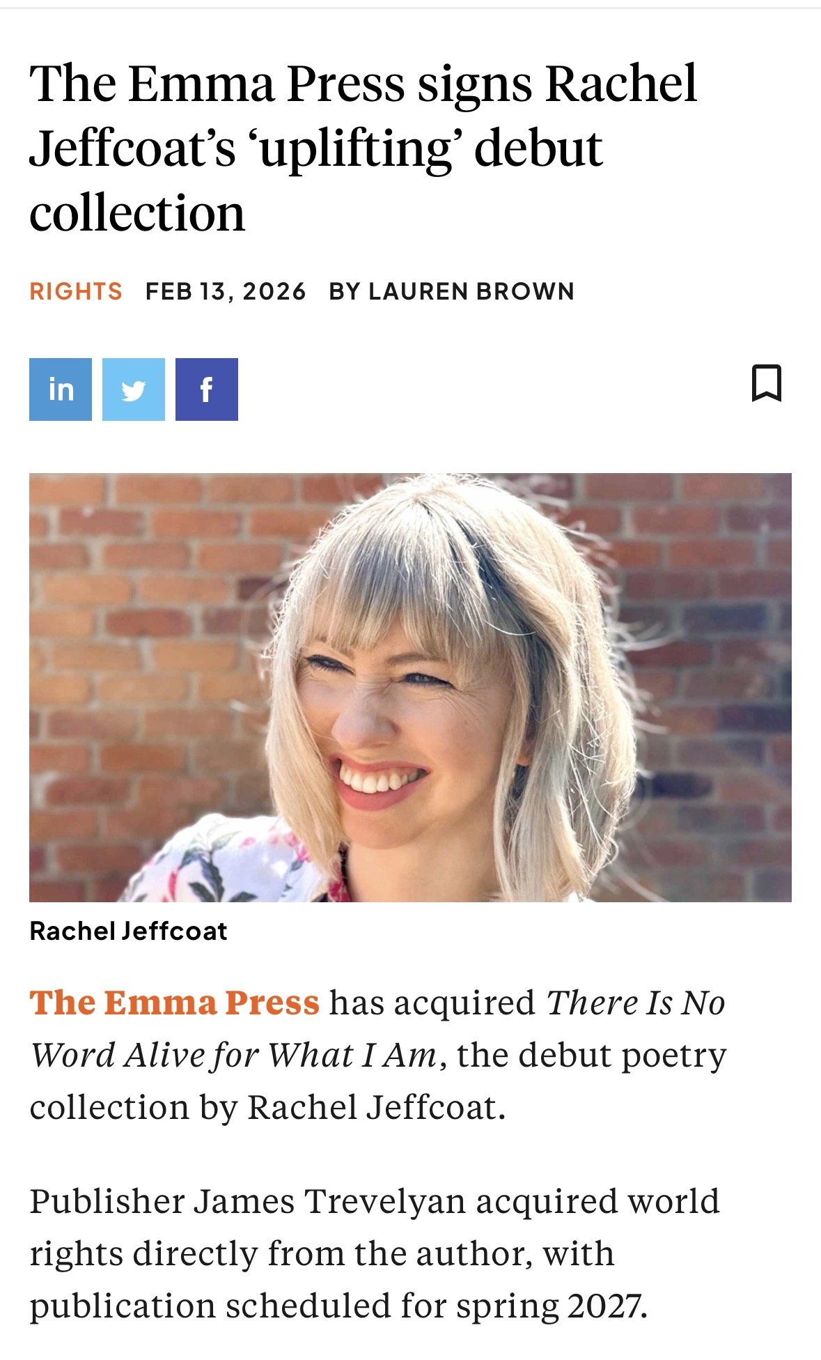 My debut collection, There Is No Word Alive For What I Am, will be published by The Emma Press in Spring 2027.